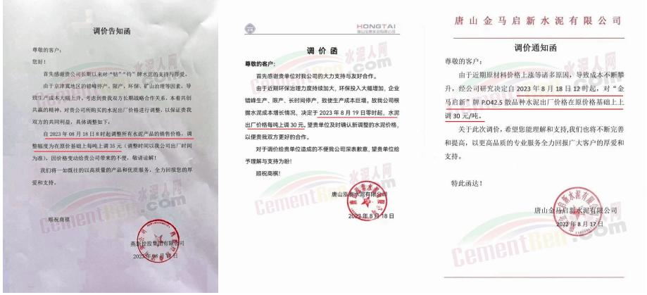 京津冀主要品牌企業(yè)金隅冀東、山水水泥等16家水泥企業(yè)通知即日起水泥及熟料報(bào)價(jià)上調(diào)30-40元/噸。就連常期供應(yīng)京津冀市場(chǎng)的內(nèi)蒙古天皓水泥也有針對(duì)性的上調(diào)了水泥報(bào)價(jià)。