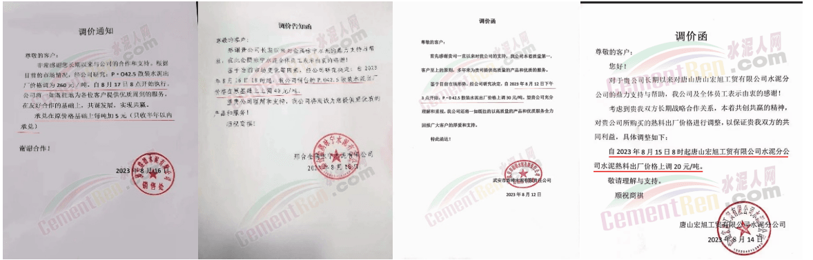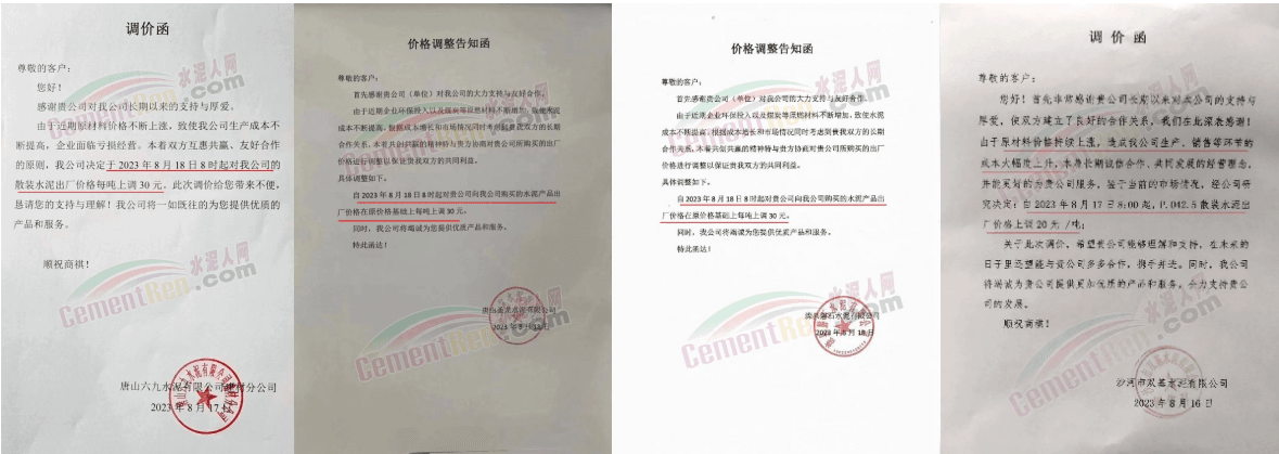 據(jù)市場(chǎng)反饋,隨著河南方向漲價(jià)帶動(dòng),湖北地區(qū)企業(yè)漲價(jià)意愿強(qiáng)烈,襄陽(yáng)地區(qū)上調(diào)水泥價(jià)格30元/噸;8月中旬以來(lái),山西臨汾、運(yùn)城、長(zhǎng)治及晉城等地區(qū)一些主導(dǎo)企業(yè)亦嘗試通知上調(diào)水泥價(jià)格30元/噸左右。16日起,河北邢臺(tái)地區(qū)一些主要廠家嘗試推動(dòng)上調(diào)水泥價(jià)格20-40元/噸。20日前后山東全區(qū)域水泥價(jià)格恢復(fù)性上調(diào)50元/噸。