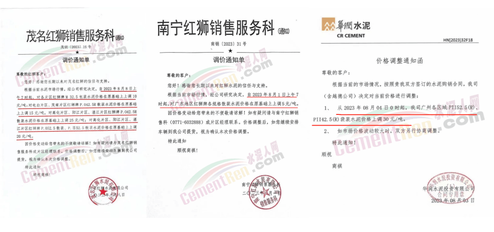8月以來(lái),華南廣東地區(qū)包括主要品牌企業(yè)華潤(rùn)水泥、紅獅水泥、錦象水泥在內(nèi)的多家企業(yè)通知上調(diào)水泥報(bào)價(jià)。涉及湛江、陽(yáng)江、高化廣州及珠三角區(qū)域多個(gè)市場(chǎng)。