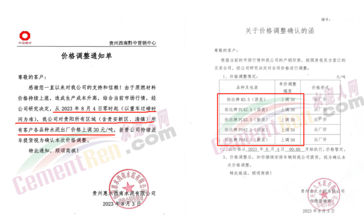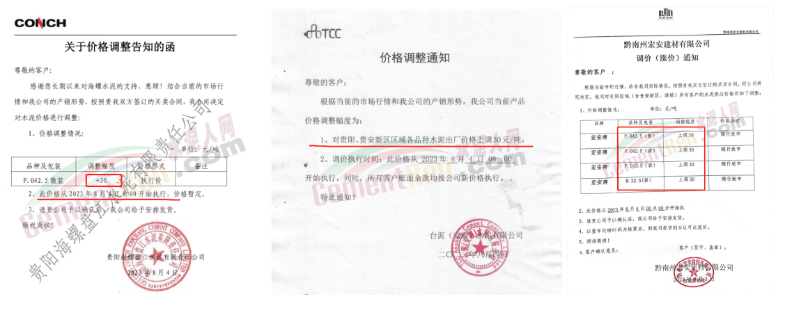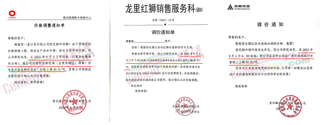 貴州區(qū)域包括紅獅、海螺、臺(tái)泥等10多家企業(yè)宣布漲價(jià)
