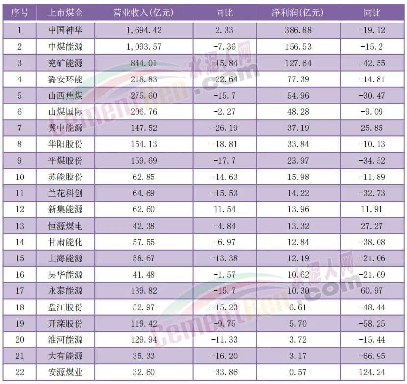 2023年上半年上市煤企經(jīng)營(yíng)業(yè)績(jī)
