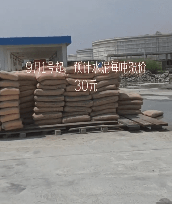 福建泉州經(jīng)銷商通知:9月1日起,預(yù)計(jì)水泥每噸漲價(jià)30元。