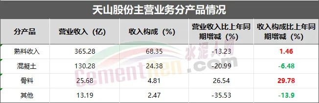 天山股份骨料營收增長26.54%