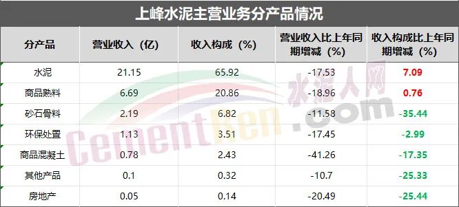 今年上半年,上峰水泥各產(chǎn)品業(yè)務(wù)營業(yè)收入同比去年均有所減少,但水泥和商品熟料營收收入占比同比去年有所增加。