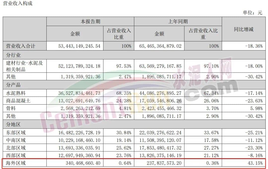 華新水泥海外營收同比增加30.57%