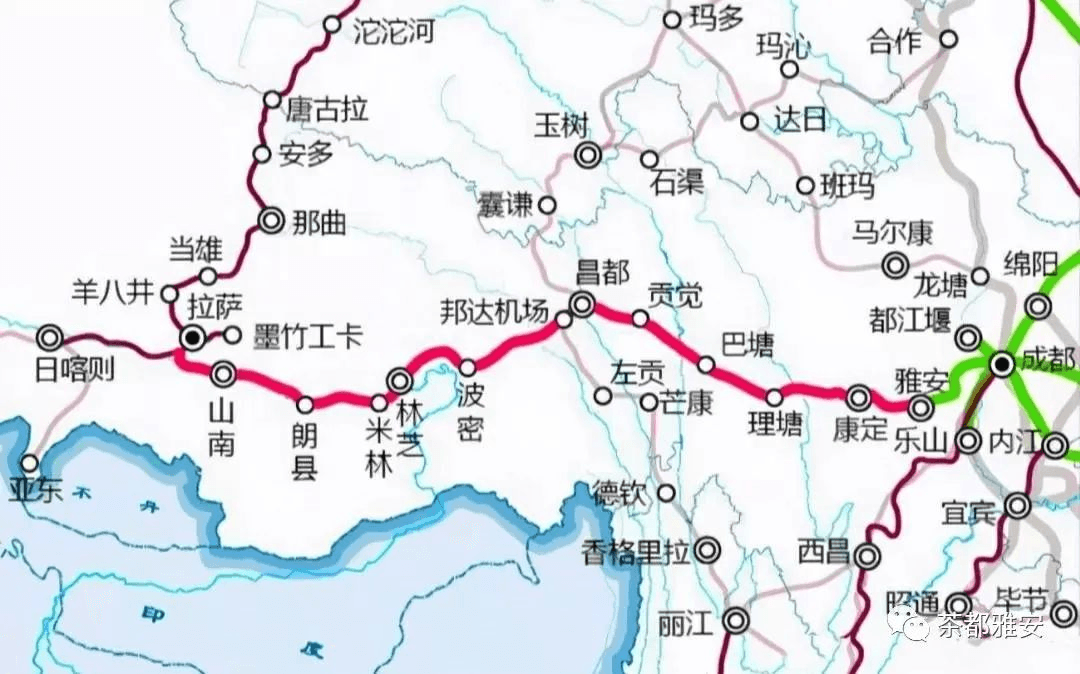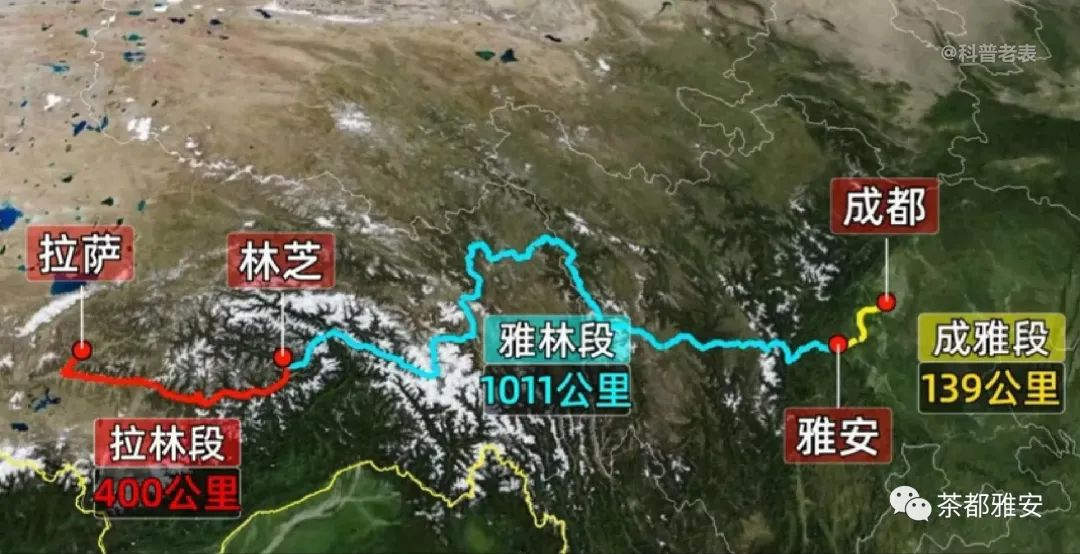 川藏鐵路從成都到拉薩,可以分成三段來看。成都到雅安的成雅段,長140公里,雅安到林芝的雅林段,長1010公里,拉薩到林芝的拉林段,長400公里。成雅段和拉林段已建成通車,剩下中間的雅林段于2020年11月初開工建設(shè),工期預(yù)計為10年,2032年左右雅林段將全線通車,設(shè)計時速為120~200公里/小時。