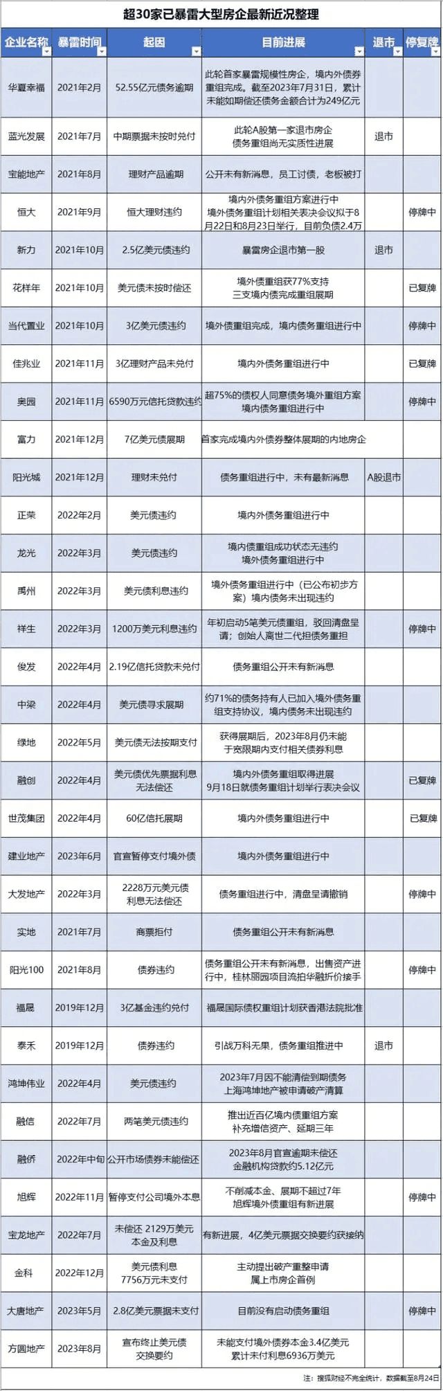 再有,房地產(chǎn)市場人均住房面積已經(jīng)達(dá)到了較高水平。房企在下行周期中,頻頻爆雷。截至2023年8月24日,除在暴雷邊緣被“拉回”的碧桂園及遠(yuǎn)洋,已經(jīng)有超過30家大型房地產(chǎn)企業(yè)暴雷。