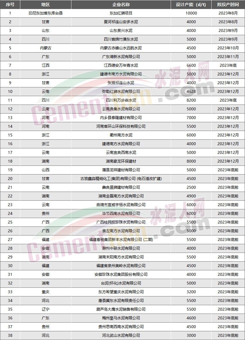 2023年即將點火投產(chǎn)的水泥熟料生產(chǎn)線項目