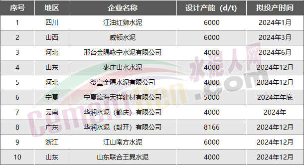 2024年即將點火投產(chǎn)的水泥熟料生產(chǎn)線項目