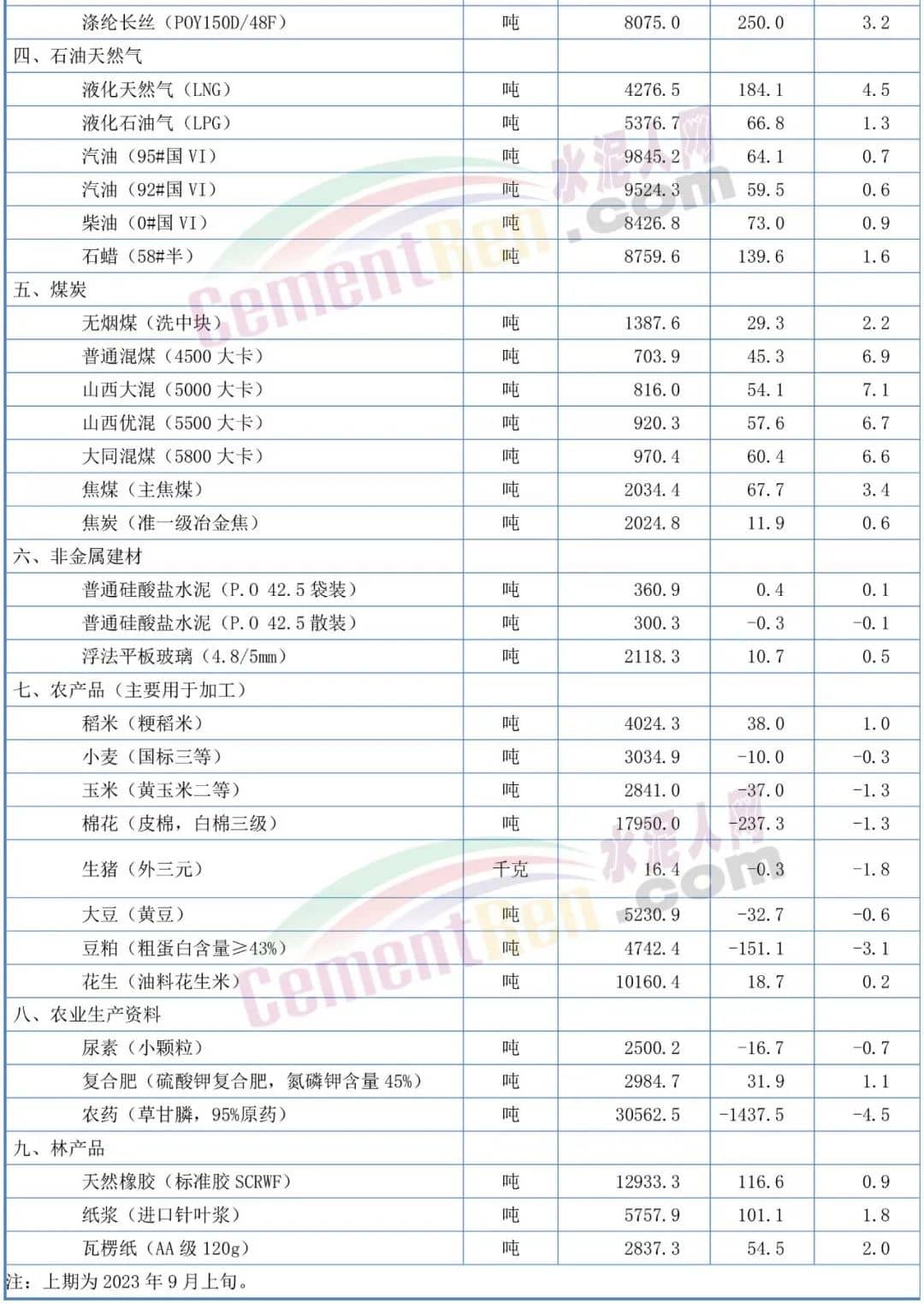 2023年9月中旬流通領(lǐng)域重要生產(chǎn)資料市場價格變動情況