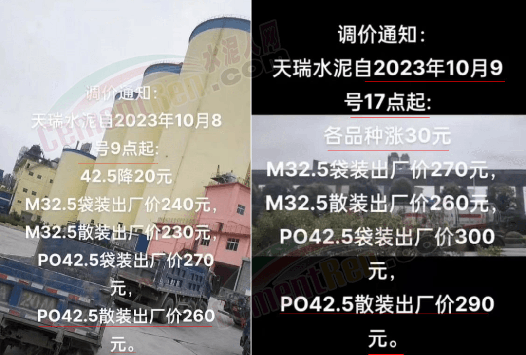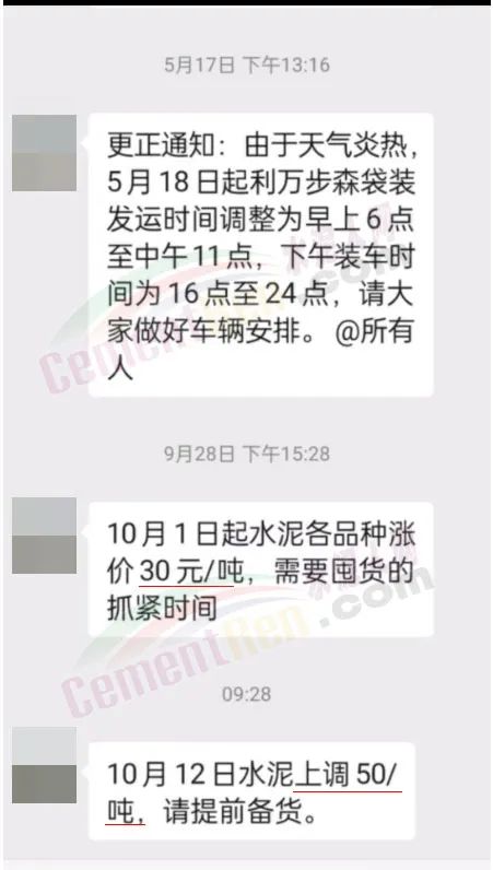 日前,河南地區(qū)主要品牌企業(yè)天瑞、中聯(lián)同力等通知上調(diào)報價30元/噸。當(dāng)?shù)亟?jīng)銷商反饋稱:企業(yè)通知10月8日9點(diǎn)降價20元/噸,降后P.O42.5散裝水泥出廠報價260元/噸;10月9日17點(diǎn)又通知上調(diào)30元/噸,上調(diào)后P.O42.5散裝水泥出廠價報290元/噸。變價像“川劇變臉”一樣快。