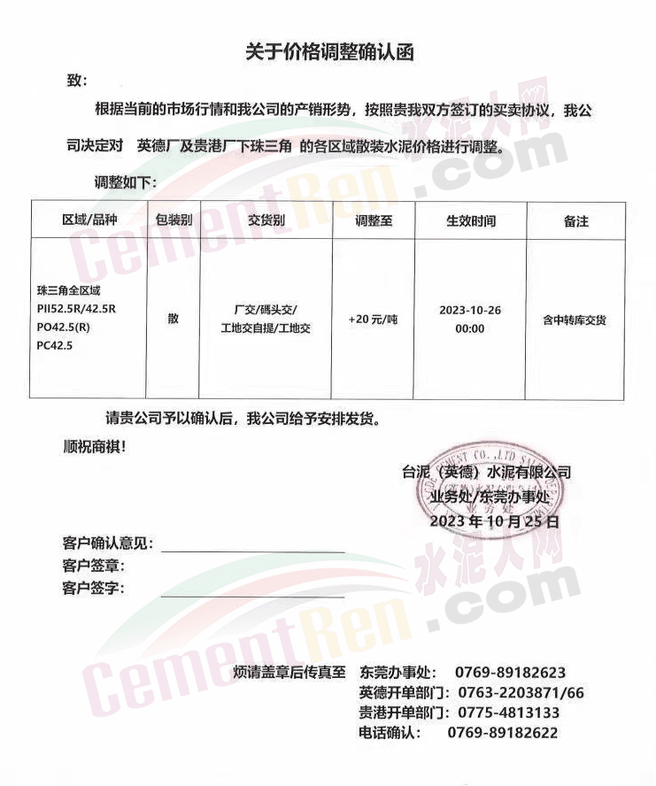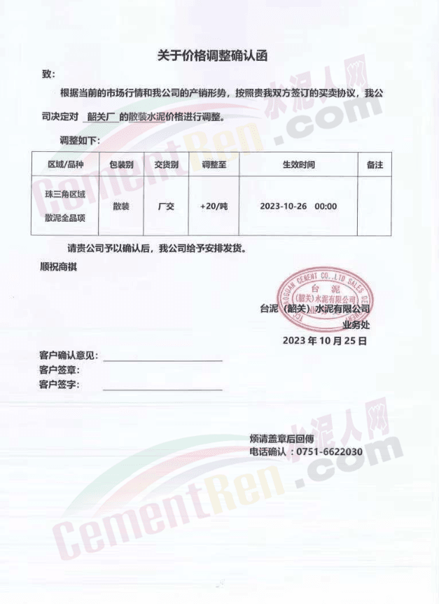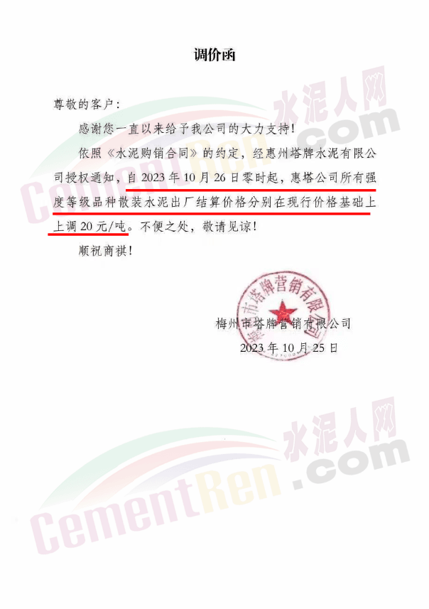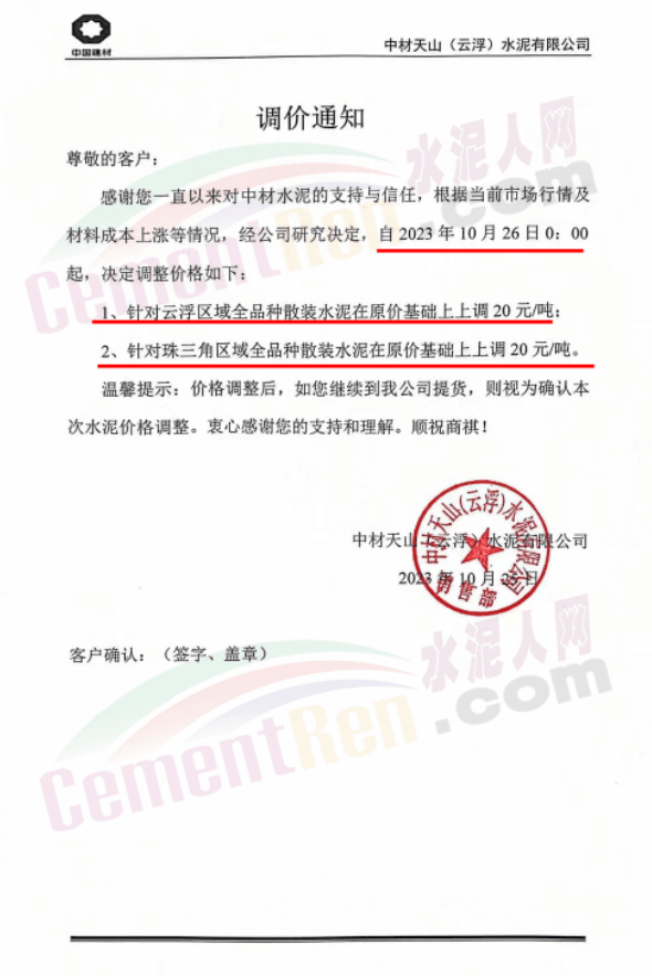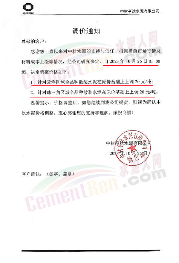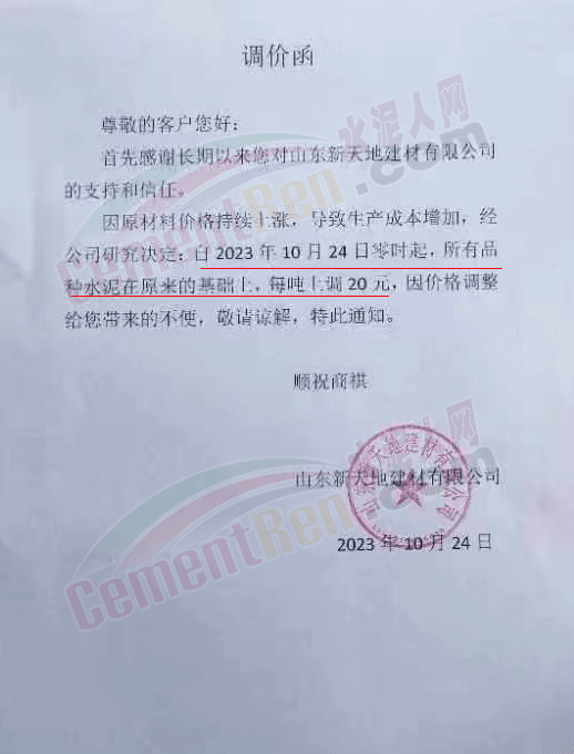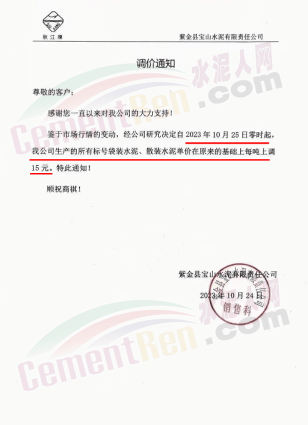 金隅冀東經(jīng)貿(mào)公司通知,由于近期原材料持續(xù)上漲,生產(chǎn)能耗成本增加,導(dǎo)致公司生產(chǎn)成本增加。為維持企業(yè)正常生產(chǎn)經(jīng)營,保障項目水泥供應(yīng),經(jīng)研究決定自2023年10月23日8時起,將米脂冀東水泥有限公司、山西金隅冀東環(huán)??萍加邢薰景l(fā)往榆林市、延安市所有市場各品種水泥出廠價上調(diào)30元/噸。