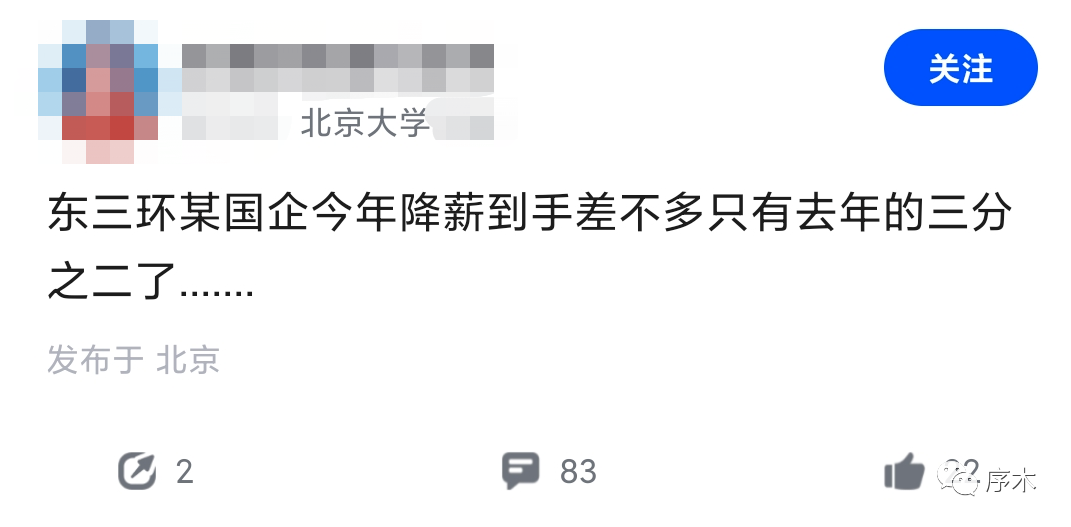 網(wǎng)友爆料說:某軍工央企,過完年開始部門考核,個人績效考核,完成當月指標情況下工資不變,未完成的績效低,工資降低。上個月非常多員工工資都少了,很多人到手六千多,也就是變相降薪的一種方式,本來就是996的工作強度,現(xiàn)在又開始變相降薪。“現(xiàn)在的國央企,員工能進能出、領導能上能下、薪酬能增能減是標配,人效提升是大勢所趨”。