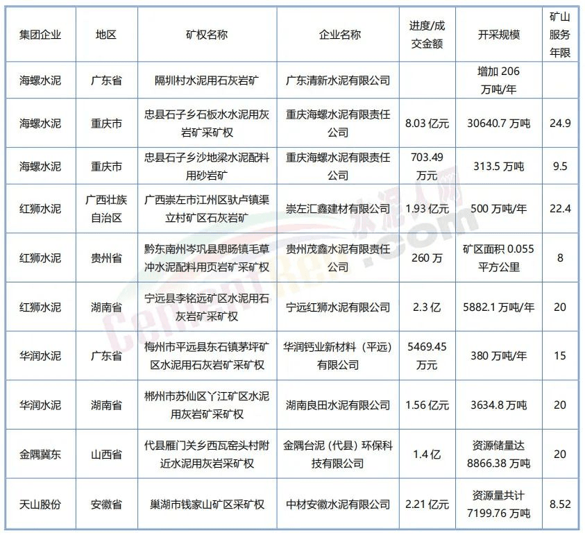 水泥行業(yè)中一直都有“得礦山者得市場”的說法,近年來,各大水泥集團(tuán)都曾不惜重金拿礦,甚至面對(duì)非??量痰臈l件,仍果斷出手。以“市場份額為基礎(chǔ),盈利為目的”的海螺水泥近期曾表示,在國內(nèi)水泥主業(yè)發(fā)展方面,公司的并購標(biāo)準(zhǔn)中除了要求有市場、有回報(bào)還要求必須有資源。
