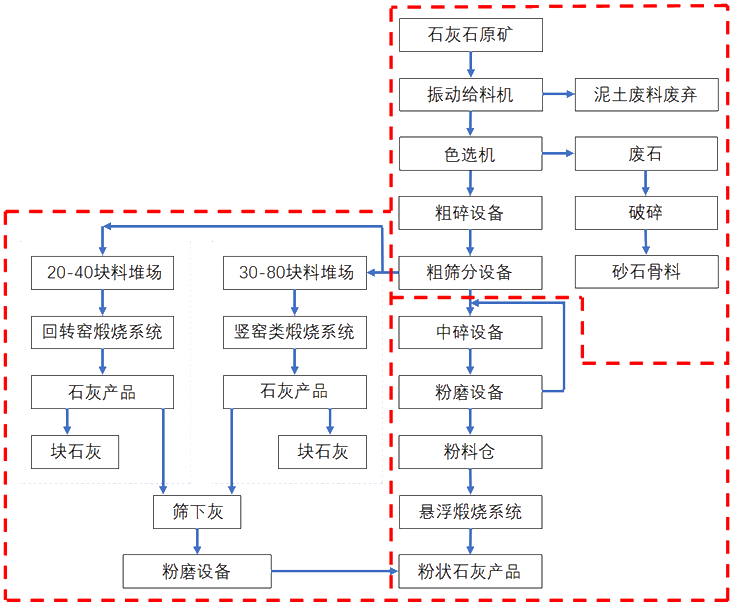 1、礦石得到價(jià)值最大化利用,根據(jù)礦石品位和市場情況,確定塊狀石灰和粉狀石灰的產(chǎn)能配置,也可配套砂石骨料產(chǎn)線,產(chǎn)品多樣化;