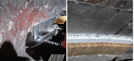 基于凹槽磚復(fù)合納米隔熱板在中國葛洲壩集團(tuán)水泥有限公司生產(chǎn)線的出色表現(xiàn),湖北京蘭水泥集團(tuán)有限公司在兩條回轉(zhuǎn)窯過渡帶定期維修更換耐火磚時(shí),決定全部采用凹槽磚復(fù)合15 mmWDS納米隔熱板,用于降低回轉(zhuǎn)窯過渡帶外殼的溫度。