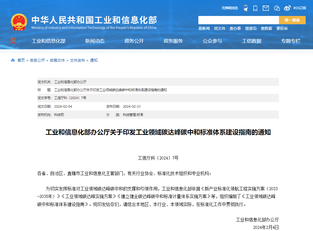 為切實發(fā)揮標(biāo)準(zhǔn)對工業(yè)領(lǐng)域碳達峰碳中和的支撐和引領(lǐng)作用,工業(yè)和信息化部依據(jù)《新產(chǎn)業(yè)標(biāo)準(zhǔn)化領(lǐng)航工程實施方案(2023-2035年)》《工業(yè)領(lǐng)域碳達峰實施方案》《建立健全碳達峰碳中和標(biāo)準(zhǔn)計量體系實施方案》等,組織編制了《工業(yè)領(lǐng)域碳達峰碳中和標(biāo)準(zhǔn)體系建設(shè)指南》。現(xiàn)印發(fā)給你們,請結(jié)合本地區(qū)、本行業(yè)、本領(lǐng)域?qū)嶋H,在標(biāo)準(zhǔn)化工作中貫徹執(zhí)行。