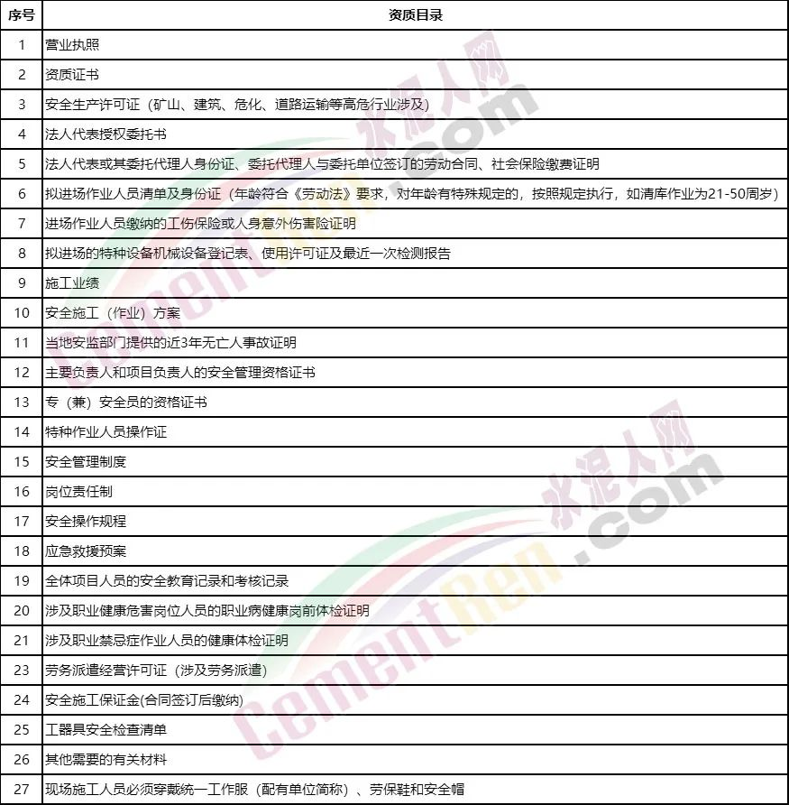 外包外委施工單位資質(zhì)材料清單