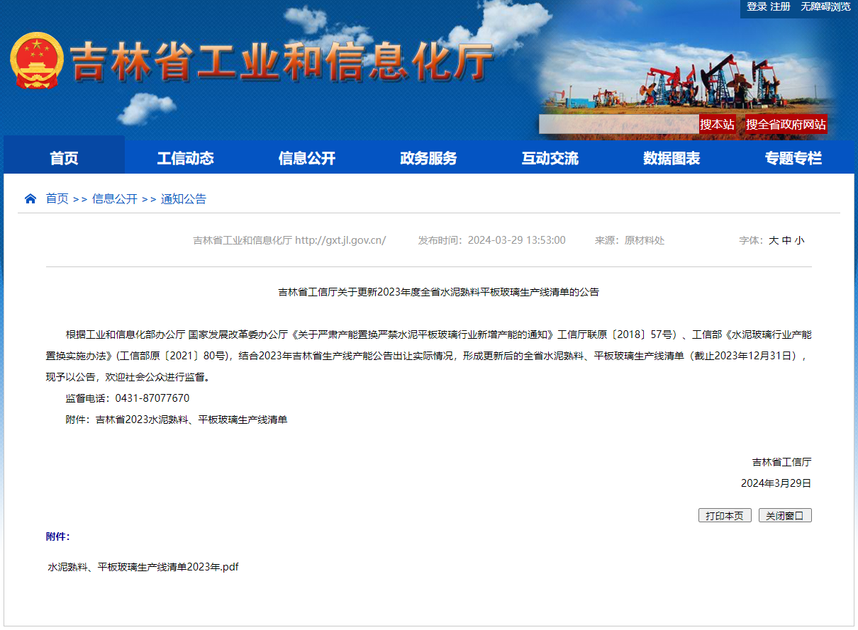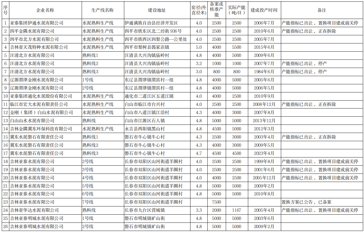 吉林亞泰水泥有限公司7500t/d生產(chǎn)線置換方案已公告,已備案。