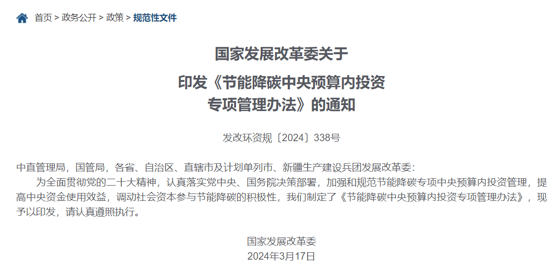 節(jié)能降碳中央預算內(nèi)投資專項管理辦法