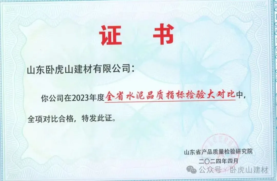 “2023年度全省水泥品質(zhì)指標檢驗大對比全相對比合格”這一榮譽的獲得,直接反映了山東臥虎山建材有限公司在產(chǎn)品品質(zhì)控制上的嚴格與卓越。在水泥品質(zhì)指標的大對比中實現(xiàn)全相對比合格,證明了其產(chǎn)品不僅符合國家及行業(yè)標準,而且在同行業(yè)中處于領(lǐng)先地位,這對于增強消費者信心、提升品牌形象具有重要意義。