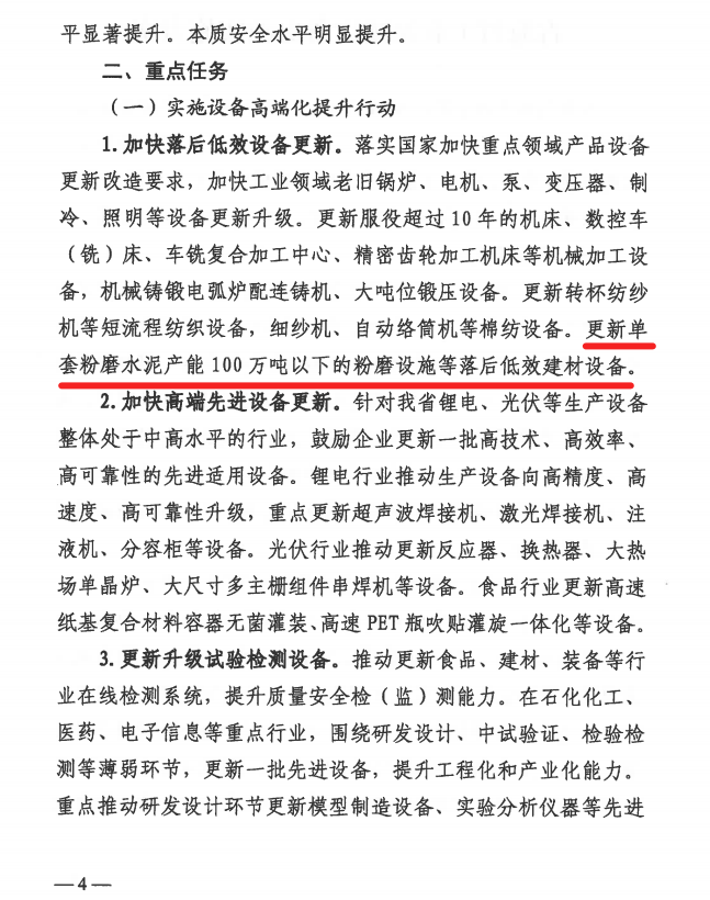 青海省工業(yè)領(lǐng)域設備更新實施方案中提到,加快落后低效設備更新,更新單套粉磨水泥產(chǎn)能100萬噸以下的粉磨設施等落后低效建材設備。