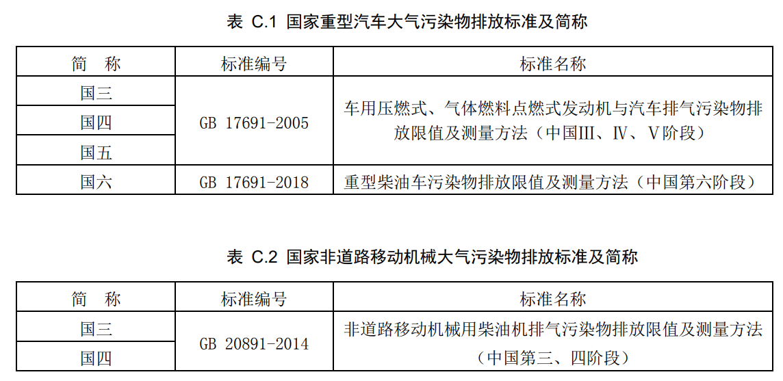 國家重型汽車和非道路移動機(jī)械大氣污染物排放標(biāo)準(zhǔn)及簡稱