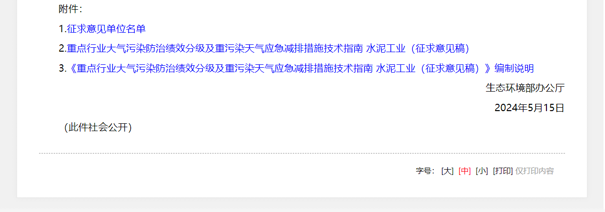 《關(guān)于推進(jìn)實(shí)施水泥行業(yè)超低排放的意見》(環(huán)大氣〔2024〕5號)
