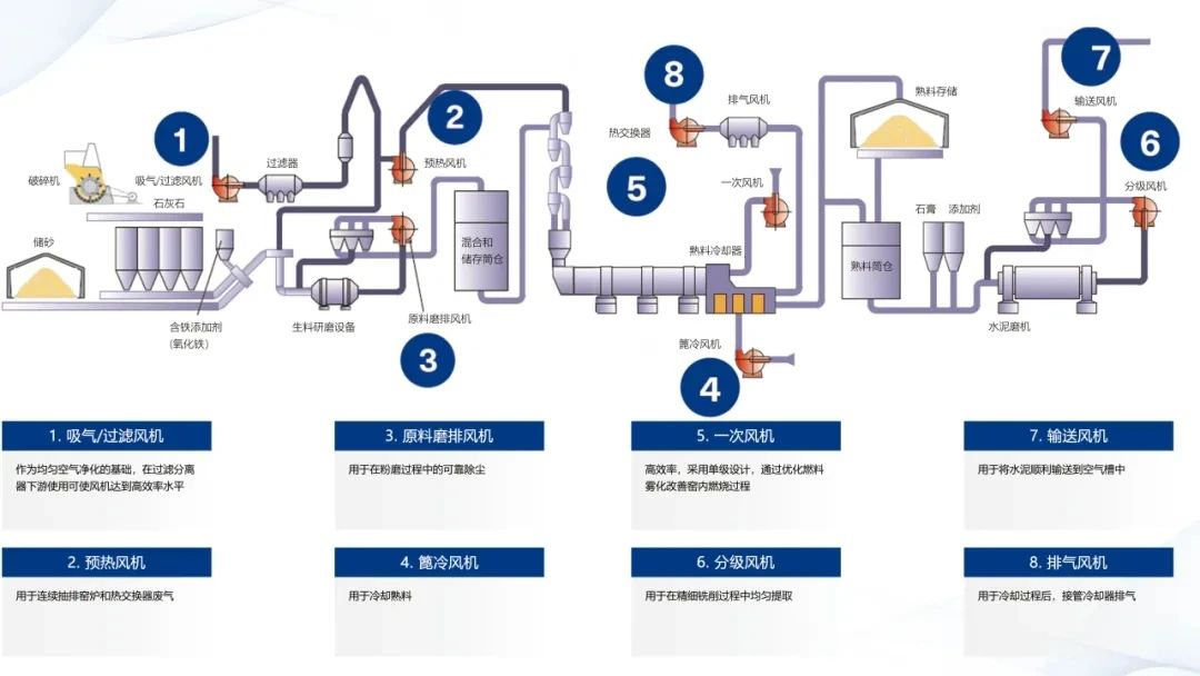 水泥生產全流程銳志風機產品組合