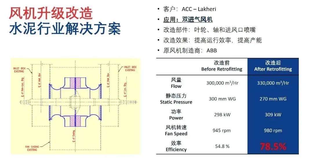 改造后,風(fēng)機(jī)工況效率常規(guī)可達(dá)85%