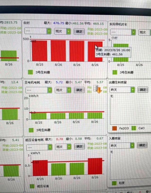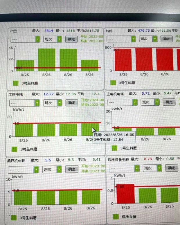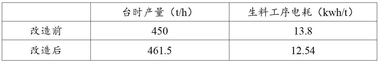 經(jīng)統(tǒng)計,系統(tǒng)臺時產(chǎn)量較改造前產(chǎn)量提升了11.5t/h,粉磨電耗較改造前降低了1.26kwh/t。改在后指標對照如下:
