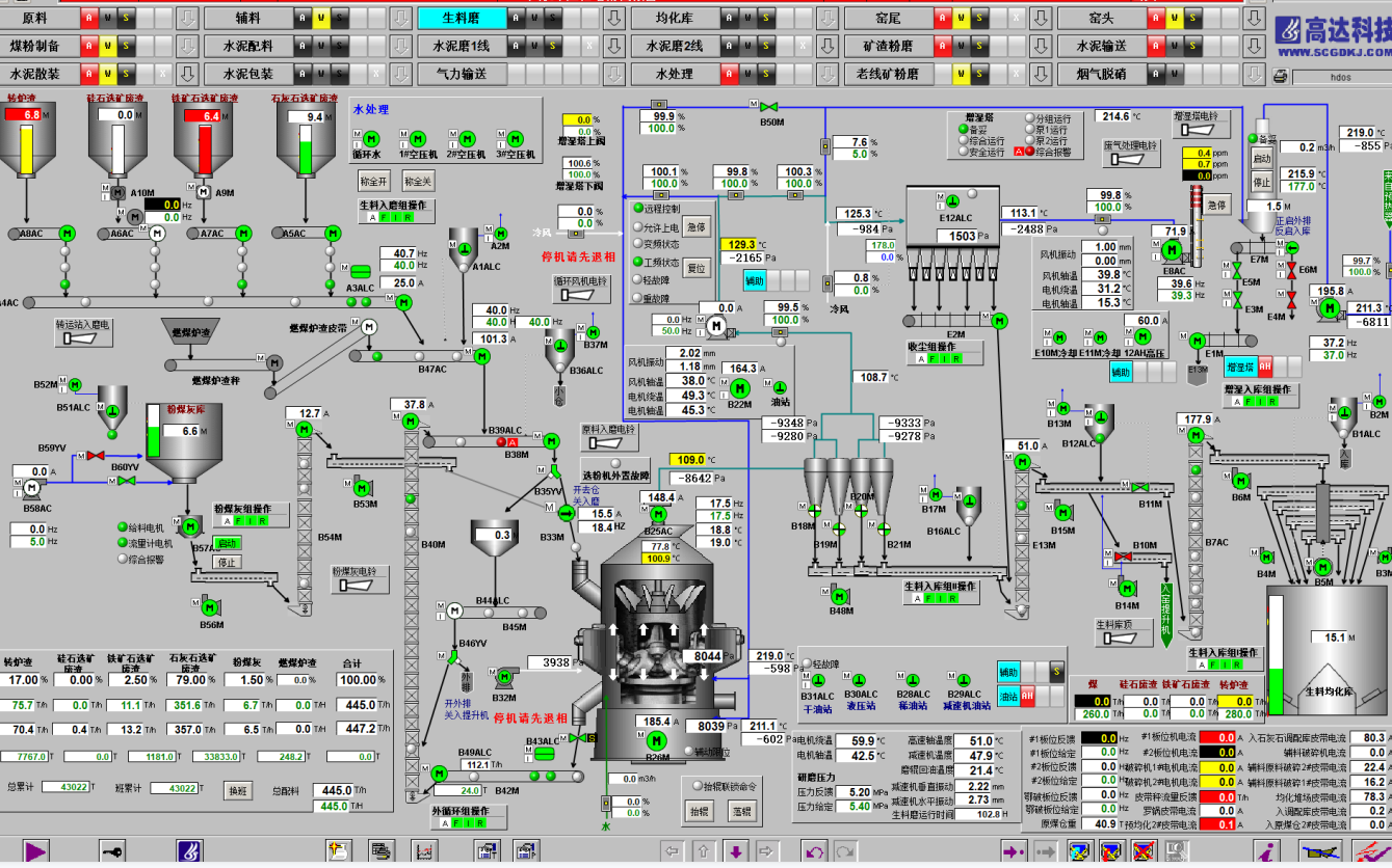 近年來,水泥企業(yè)在推行低碳環(huán)保的同時,嘗試大量使用各種工業(yè)固廢,比如大量使用砂石生產(chǎn)線的各種下腳料、資源化利用鋼鐵廠的各種收塵灰等等,類似物料會造成生料配料中的粉狀物料偏多,物料離析造成料層不穩(wěn),引起立磨的震動和生產(chǎn)質(zhì)量的波動。另一方面,部分水泥廠生料配料采用的物料水分高、粘性強,特別是頁巖、粘土、鐵尾礦、城市淤泥等,復雜的物料進入立磨磨盤,包裹著回料中細粉被碾壓后,形成密實的死餅,不容易被打散、烘干和分選,勢必增加磨機的風阻、降低磨機的烘干和分選效率,進而降低磨機產(chǎn)量。同時為加強烘干效果、減少磨機外排料,必然加大熱風用量,導致磨機配套的循環(huán)風機功耗增加。