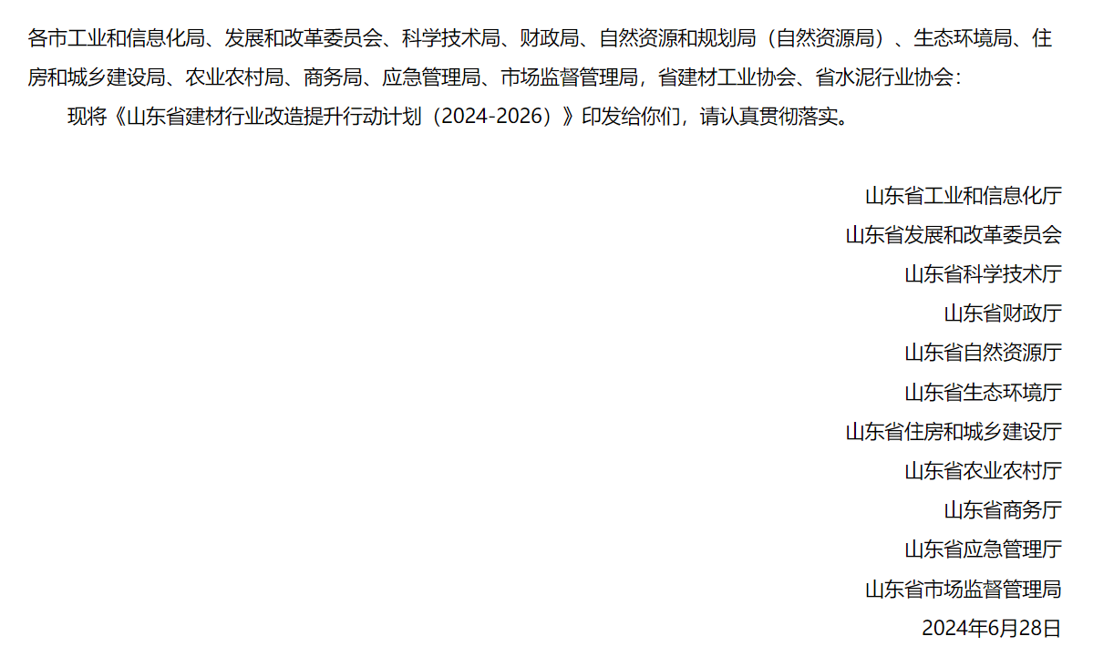 山東省水泥行業(yè)改造提升工作方案(2024-2026)
