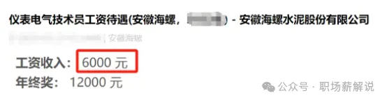 員工5:該爆料者是海螺水泥的一名儀表電氣技術員,他現(xiàn)在每個月的工資收入是6000元,年終獎金是發(fā)2個月的工資,也就是十四薪了。五險一金這個福利,他沒有提到。