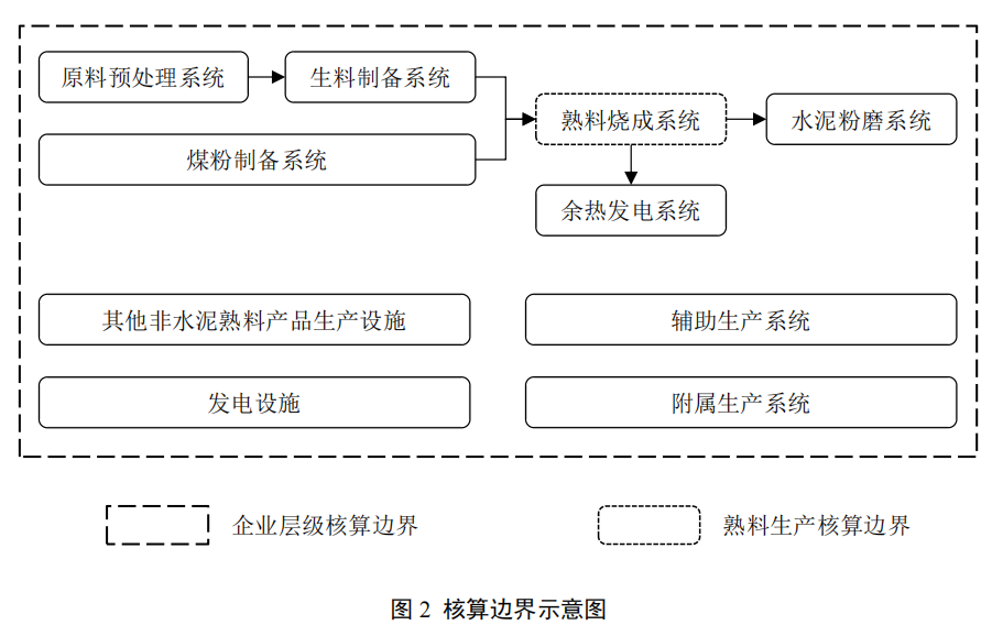 企業(yè)層級(jí)核算是以水泥熟料生產(chǎn)為主營(yíng)業(yè)務(wù)的法人或視同法人的獨(dú)立核算單位為邊界,溫室氣體排放核算和報(bào)告范圍包括:主要生產(chǎn)系統(tǒng)、輔助生產(chǎn)系統(tǒng)和附屬生產(chǎn)系統(tǒng)產(chǎn)生的溫室氣體排放。其中,輔助生產(chǎn)系統(tǒng)包括主要生產(chǎn)管理和調(diào)度指揮系統(tǒng)、動(dòng)力、供水、供風(fēng)、機(jī)修、庫房、化驗(yàn)、計(jì)量、水處理、運(yùn)輸和環(huán)保設(shè)施等。附屬生產(chǎn)系統(tǒng)包括廠區(qū)內(nèi)為生產(chǎn)服務(wù)的主要用于辦公生活目的的部門、單位和設(shè)施(如車間浴室、保健站、辦公場(chǎng)所、自營(yíng)的職工食堂、公務(wù)車輛及班車等)。
