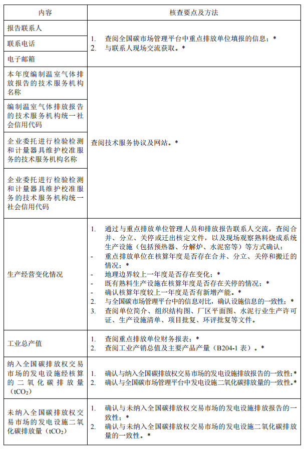 核查組應(yīng)確認(rèn)排放報(bào)告中重點(diǎn)排放單位基本信息的完整性、準(zhǔn)確性以及與數(shù)據(jù)質(zhì)量控制方案的符合性。重點(diǎn)排放單位基本信息的核查。