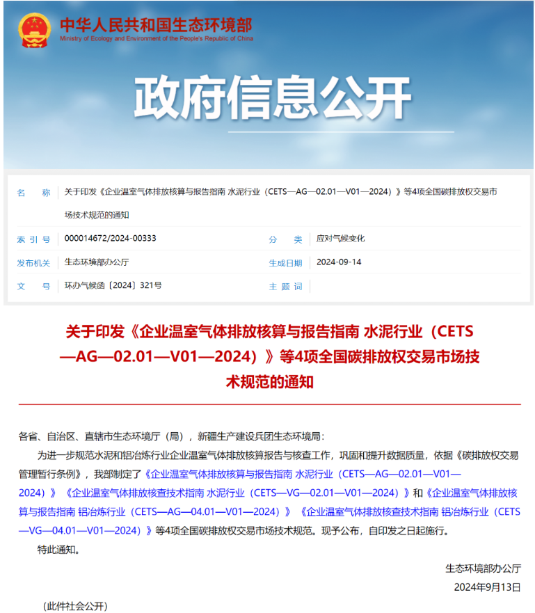 日前,生態(tài)環(huán)境部印發(fā)《企業(yè)溫室氣體排放核算與報(bào)告指南水泥行業(yè)(CETS—AG—02.01—V01—2024)》等4項(xiàng)全國碳排放權(quán)交易市場(chǎng)技術(shù)規(guī)范。并提到,為進(jìn)一步規(guī)范水泥和鋁冶煉行業(yè)企業(yè)溫室氣體排放核算報(bào)告與核查工作,鞏固和提升數(shù)據(jù)質(zhì)量,依據(jù)《碳排放權(quán)交易管理暫行條例》,我部制定了《企業(yè)溫室氣體排放核算與報(bào)告指南 水泥行業(yè)(CETS—AG—02.01—V01—2024)》 《企業(yè)溫室氣體排放核查技術(shù)指南 水泥行業(yè)(CETS—VG—02.01—V01—2024)》和《企業(yè)溫室氣體排放核算與報(bào)告指南 鋁冶煉行業(yè)(CETS—AG—04.01—V01—2024)》 《企業(yè)溫室氣體排放核查技術(shù)指南 鋁冶煉行業(yè)(CETS—VG—04.01—V01—2024)》等4項(xiàng)全國碳排放權(quán)交易市場(chǎng)技術(shù)規(guī)范?,F(xiàn)予公布,自印發(fā)之日起施行。