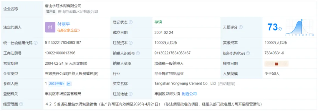 唐山永旺水泥有限公司(曾用名:唐山市金鑫水泥有限公司),成立于2004年2月24日,位于河北省唐山市豐潤區(qū)泉河頭鎮(zhèn),是一家以從事非金屬礦物制品業(yè)為主的企業(yè)。在本次水泥人網、水泥內參發(fā)起的“水泥質量萬里行”市場調研中,發(fā)現該公司生產的銀隅牌P.O 42.5水泥存在氯離子超標和組分不合格等質量問題,并且這批產品已經流向了密云區(qū)南河路建材市場、朝陽建材市場等地。