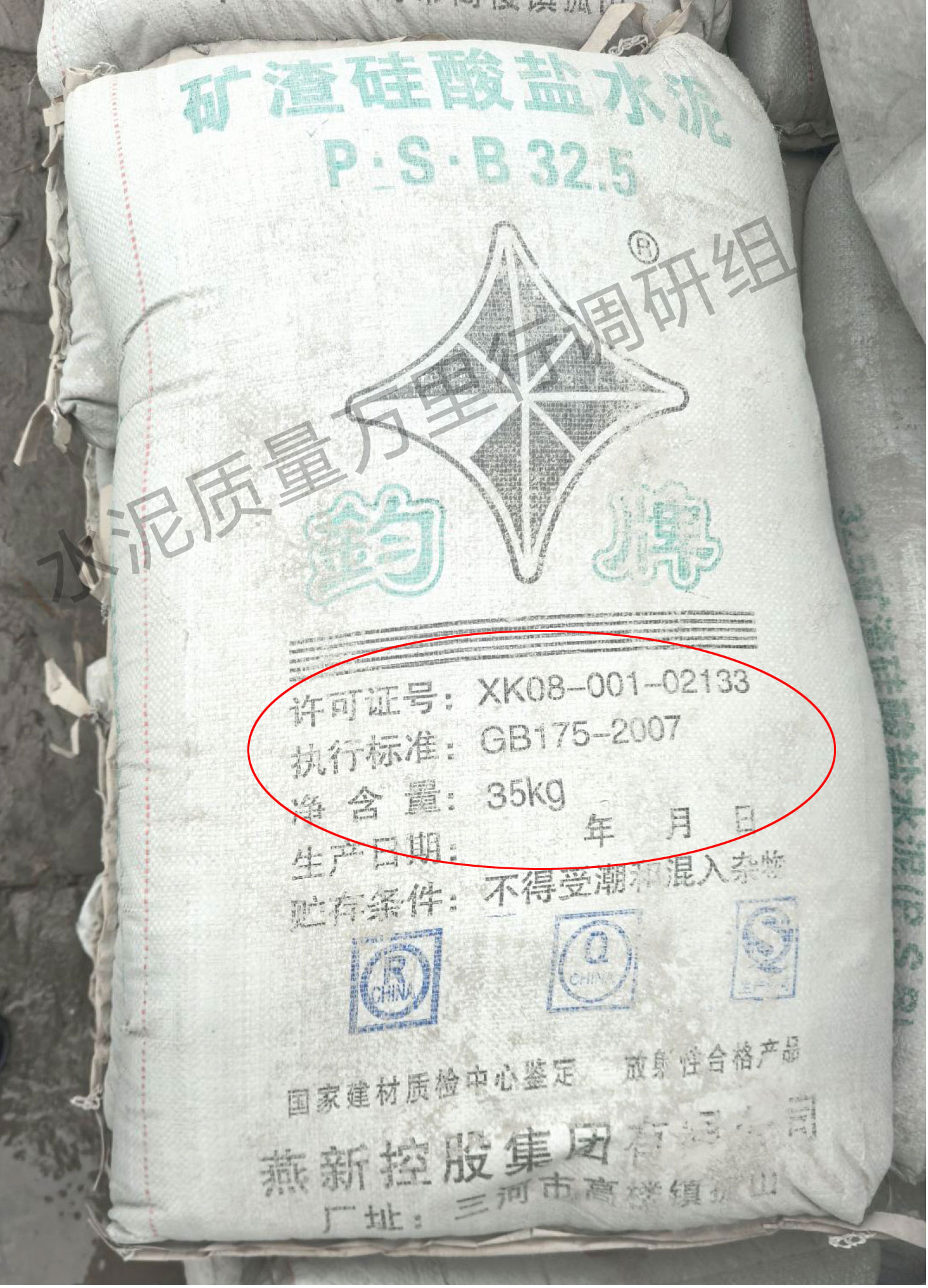 上面這些尚有據(jù)可查,還有部分“三無產(chǎn)品”——無生產(chǎn)日期、無生產(chǎn)廠家、無生產(chǎn)許可證號或生產(chǎn)許可證號和標(biāo)稱廠家查無此廠的情況。此類產(chǎn)品分布在北京市多個區(qū)縣,日銷量百余噸。此外,還有包裝袋印刷相關(guān)信息錯亂情況,屢見不鮮,如:標(biāo)稱為“鈞牌”P.O42.5水泥的執(zhí)行標(biāo)準(zhǔn)引用過期水泥標(biāo)準(zhǔn)GB175-2007。