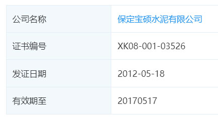 標(biāo)稱銷售商為唐山宏盛水泥經(jīng)貿(mào)有限公司的“銳”牌P.O42.5水泥,許可證編號:XK08-001-03526。據(jù)查詢,該許可證企業(yè)主體為保定寶碩水泥有限公司,發(fā)證日期2012年5月18日,有效期至2017年5月17日。在該批次產(chǎn)品包裝上未見標(biāo)稱生產(chǎn)企業(yè)名稱。