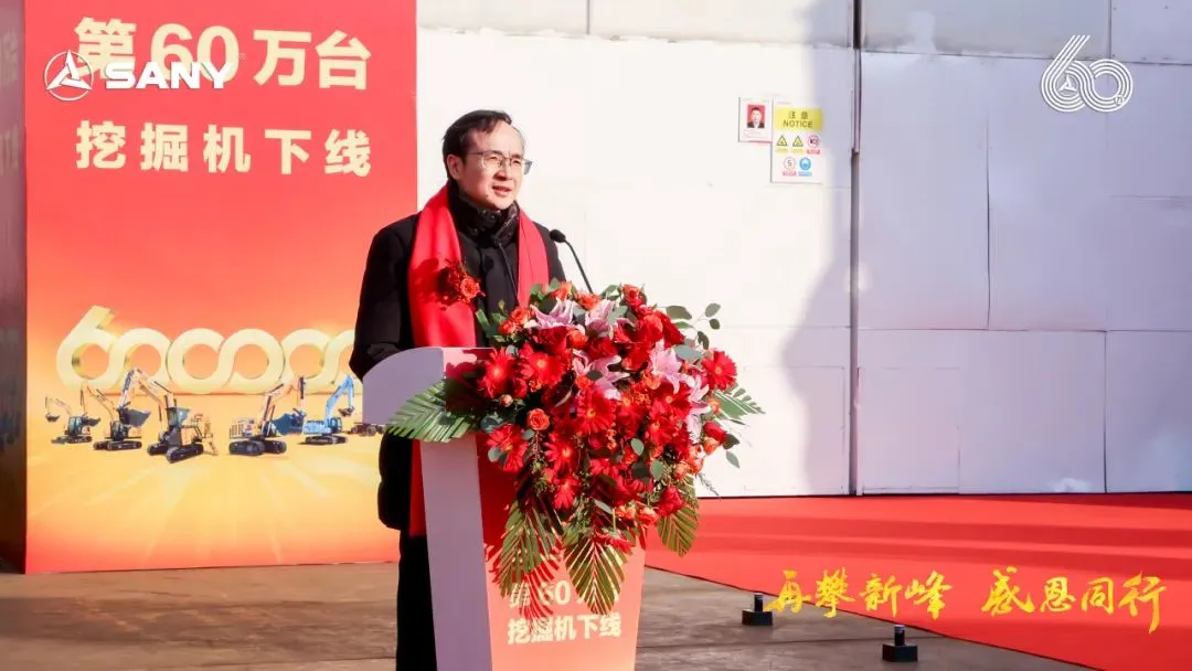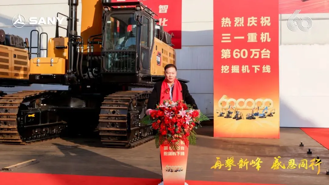 三一集團高級副總裁、三一重機總經(jīng)理王政先生在致辭中表示:“寒冬難掩喜悅,見證三一挖機第60萬臺下線盛事。三一自1986年起,以“三個一流”為愿景,秉持“品質(zhì)改變世界”使命,從湖南走向全球。這第60萬臺,不僅銘刻于三一的發(fā)展歷程,也創(chuàng)造了中國挖機歷史新的高度。