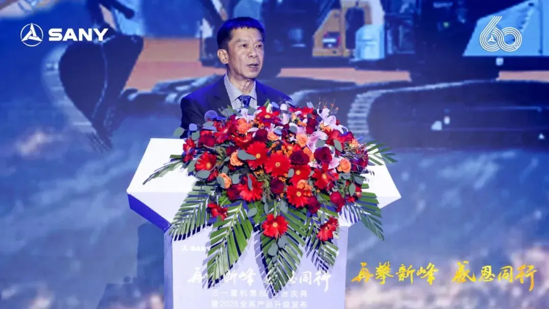 中國工程機械工業(yè)協(xié)會會長蘇子孟先生出席大會并向三一重機六十萬臺挖掘機慶典暨2025全系列產(chǎn)品升級表示熱烈的祝賀!